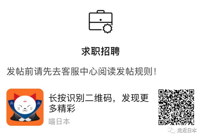 看着麻烦,但是其实都是一些文件,只要按喵喵写的一个一个准备,办理这些手续还是挺方便的。同时不管是招聘公司,还是想找工作的朋友都可以在喵日本求职招聘板块找到你要的哦。尤其是现在招聘人才还是免费的。需要的朋友快来看看吧。↓