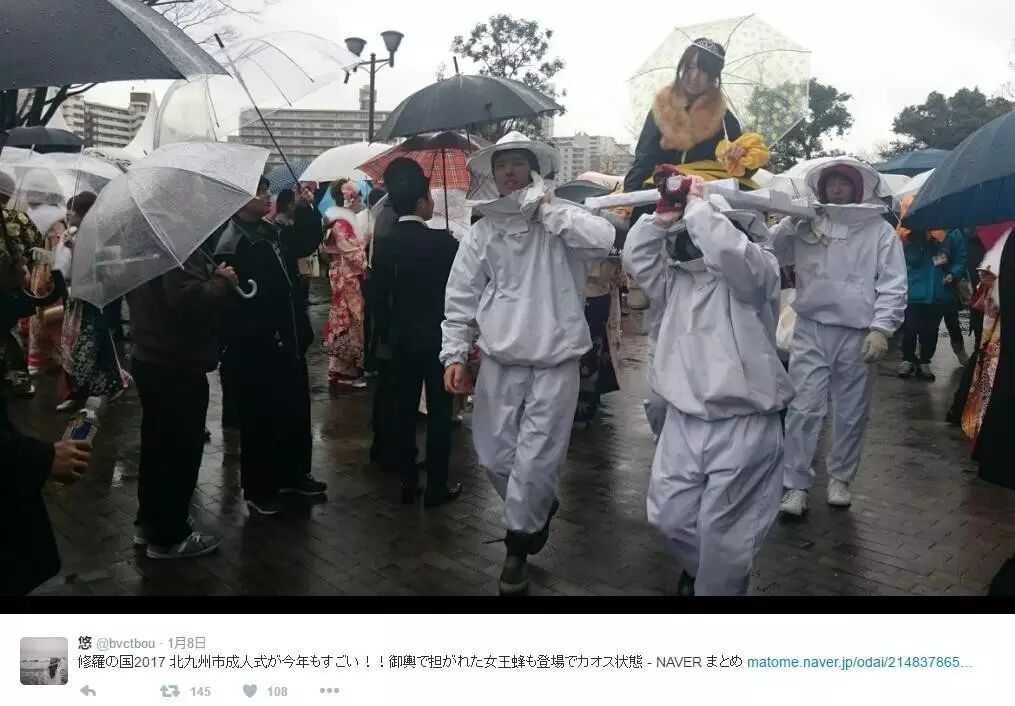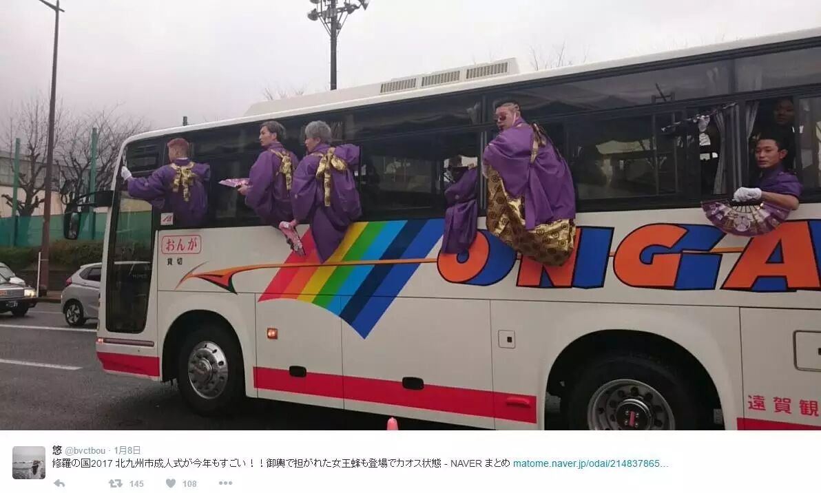 福冈县北九州市,这帮即将步入成年的壮(no zuo)志(no die)青年秉承一年一度“日本第一””空前绝后“的口号带来一次画风突变的的成人式: