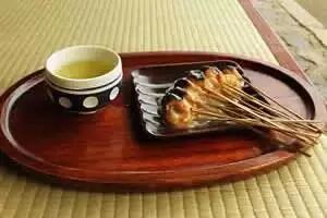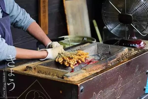 只卖一样东西——用竹签串起来沾酱吃的小年糕。
