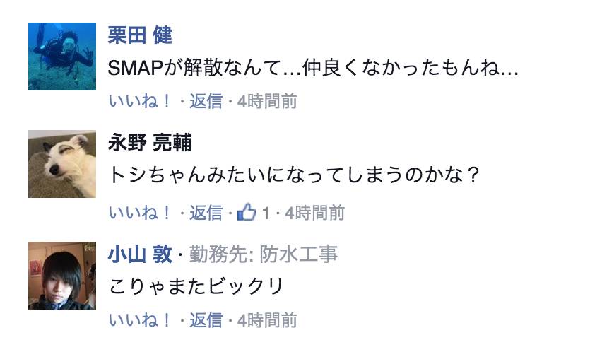 日本网友们不淡定了,对这个成立27年的天团分裂表示痛心,话说小编也很伤心啊????虽然是木村大叔脑残粉一枚,但是其他队员的离去,大叔会不会寂寞呢。。????