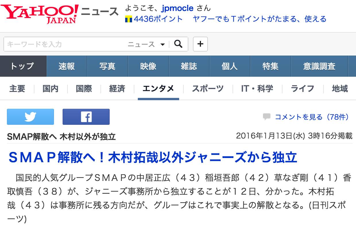 SMAP成立于1988年,1991年发行单曲正式出道,至今27年仍是高人气组合,但成员在2014年录制综艺节目时,便曾坦言每个人都考虑过要解散,其中以队长中居正广最频繁,招认自己已考虑至少5次。如今SMAP真的爆出解体,消息立刻冲上日本网站热搜,但据悉团体目前还有未完成的工作合约,何时会正式解散尚不明确。