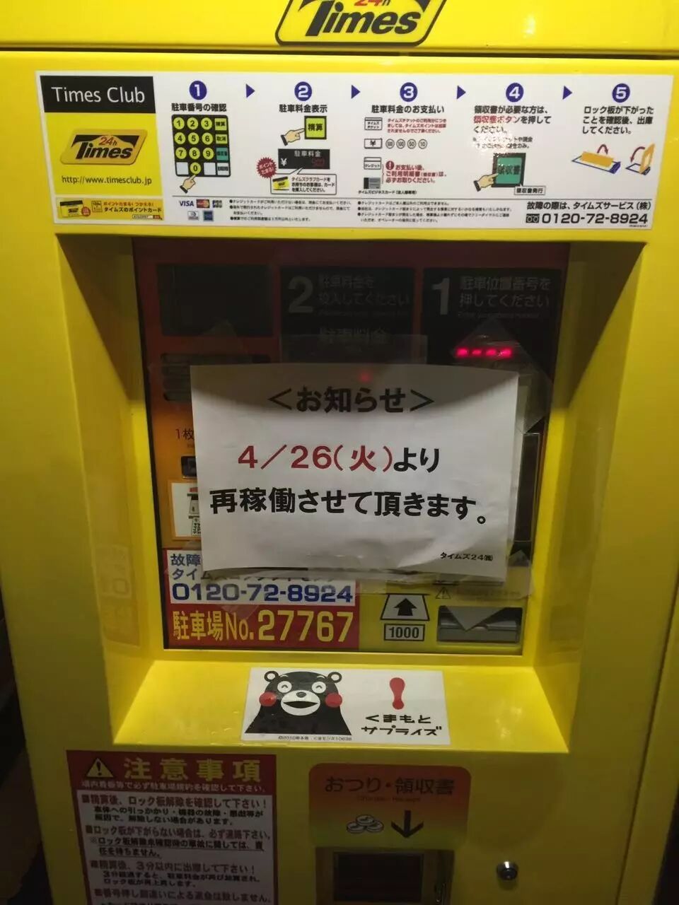 从阿苏的小村庄感到熊本市内,已经是晚上,找了个停车场停下车。发现很多来自福冈的车。有的人直接睡在车里。让我印象很深刻的是停车场都成免费的了。熊本本地人为了感谢来自福冈的志愿者们特意把停车场给免费了。