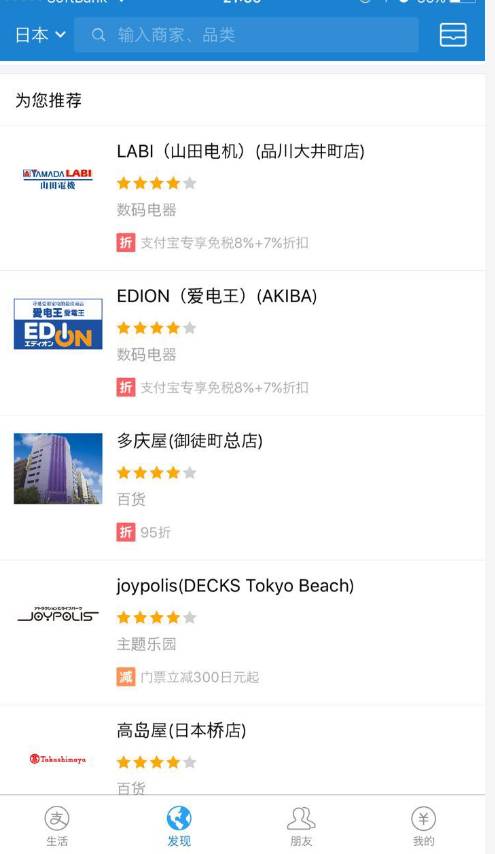 以前支付宝支付需要繁琐的认证,还需要国内手机号码。现在日本手机号码也可以申请了,非常方便。而且在日本的小伙伴们可以通过以下画面找日本可以用支付宝的店。