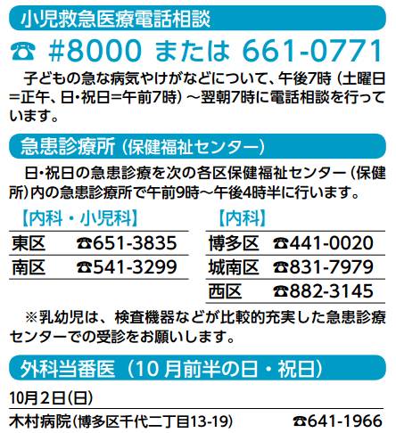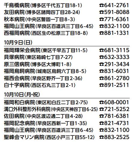 外科当番医(10 月前半の日・祝日)10月2日(日)