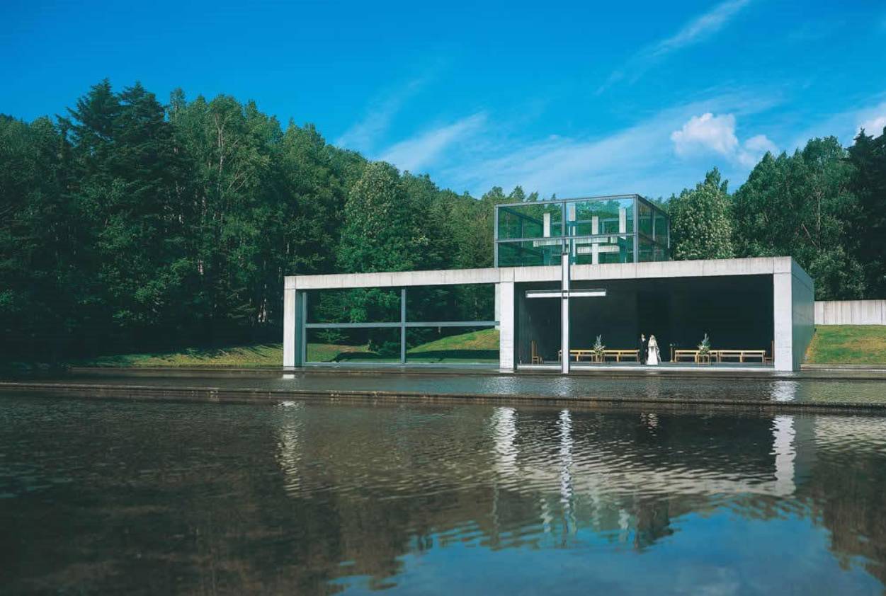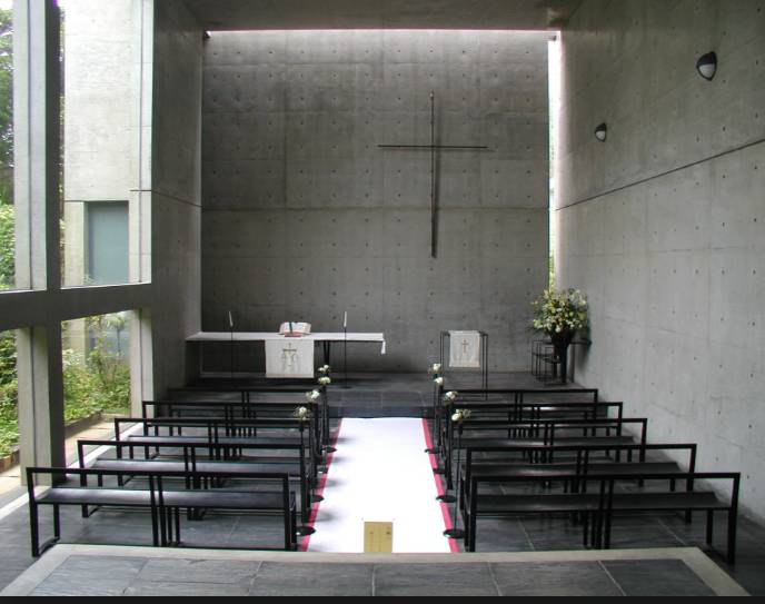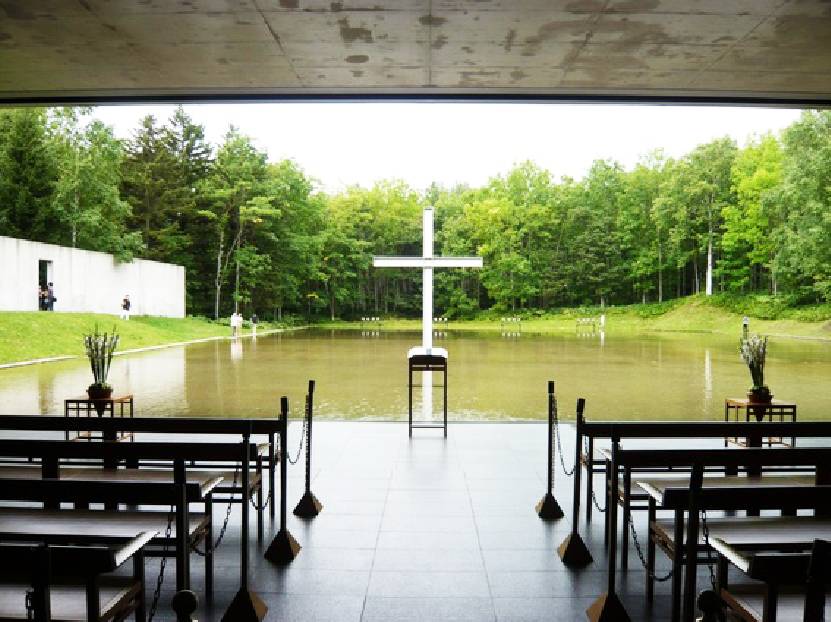 这座用于婚礼的小教堂由日本著名的建筑师安藤忠雄设计,是他教堂三部曲之一。(其余两个分别为光之教堂和风之教堂)。教堂与周边的度假酒店结合设计。于1988年完工。