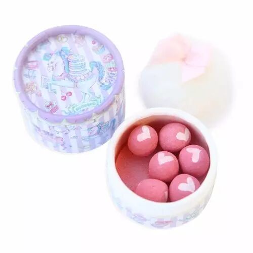 补妆的时候,也让别人羡慕不已哟~~少女粉粉~~ 在彩色的珠宝和动物们的游行之中进行了可爱的描绘,在打开的同时看到可爱的心形图案的球状,心情也会变得愉悦!微珠光的配合更能衬托脸色表情的立体感,让肌肤显得更有光泽感,配合葡萄籽油等保湿成分让脸部不易干燥脱妆,而且还附带软软的专用粉扑,轻松完成美好妆容!