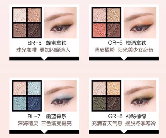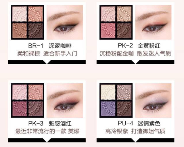 01古典粉褐 :模特色,粉棕色系,最温柔小女人啦,也是广告主打色,日本卖的也是最好的,内敛柔和通勤百搭,尽显温柔深邃的眼神。