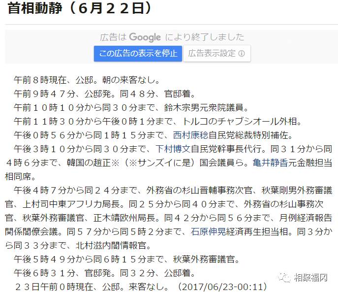 引起日本政界和媒体震惊的消息,是板垣英宪在21日追写的一条博客。这一条博客很明确地写道:“晚期癌症(4期),已经转移到淋巴关节,转移到脑部只是时间的问题,所剩生命只有3个月”——这是6月17日上午,安倍首相在母亲洋子的陪伴下在庆应大学附属医院接受精密检查(MRI检查等)时,被告知的结果。6月19日下午6时开始,在通常国会结束后于首相官邸举行的记者会见时,安倍首相的表情缺乏精彩,也没有霸气。无精打采的原因是因为在10日,医生告知他“已经来不及了,所剩生命只有3个月。”