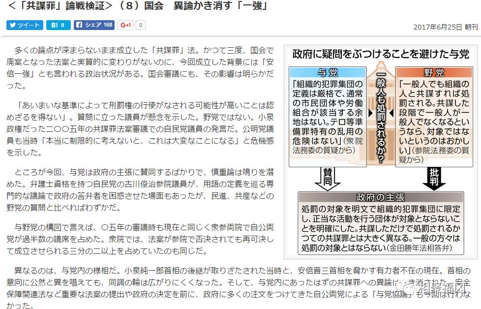 不过确实安倍在台上的时间太长了,比起其他首相的三年他都快接近5年了,在日本政坛,属于很长寿的了。虽然日本社会一直对安倍的评价各异,但是一直支持率很高。说明国民对其还是很肯定的。但是有一件事儿。安倍首相领导的政权,以联合执政党占据多数议席的优势,在国会中强行通过了“共谋罪”,这一新罪,颠覆了日本迄今为止“以实施犯罪行为而定罪”的犯罪认定规则,而是在策划、商议等未实施犯罪行为时期,就可以认定为“犯罪”,同时可以将一起商议甚至在场的人都作为“共谋嫌疑者”予以逮捕。安倍政府的解释是“为了打击恐怖行为”,但是日本国民的担忧是:“政府认为你有犯罪动机,就可以逮捕。”因此认为安倍政府现在是独断专行为所欲为。有人希望他下台还是能够理解的,毕竟独断专横的首相还是很可怕的。