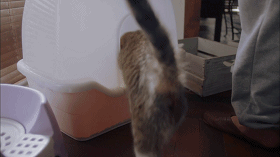 睡眼朦胧的西岛叔的早起列表是:喂粮端水,铲屎梳毛。