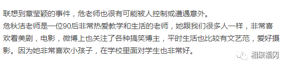 现在我们就是在跟时间赛跑争取在出现最坏的情况之前找到危老师!!求求大家赶紧扩散。