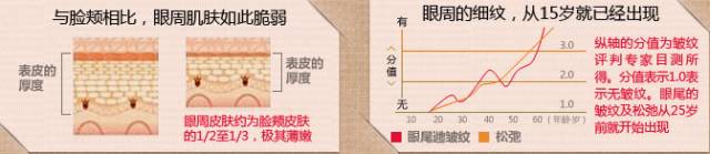 眼部由于没有骨头的支持,同时相对面颊 的肌肉软而薄,再加上每天眨眼近20000次,又或者需要化妆,戴隐形眼镜等,会令眼部活动加重负担,眼部便提早老化是一般的事实。眼部状况可以很大的影响一个人整体的表面年龄,可以和真实年龄相差7至10岁。