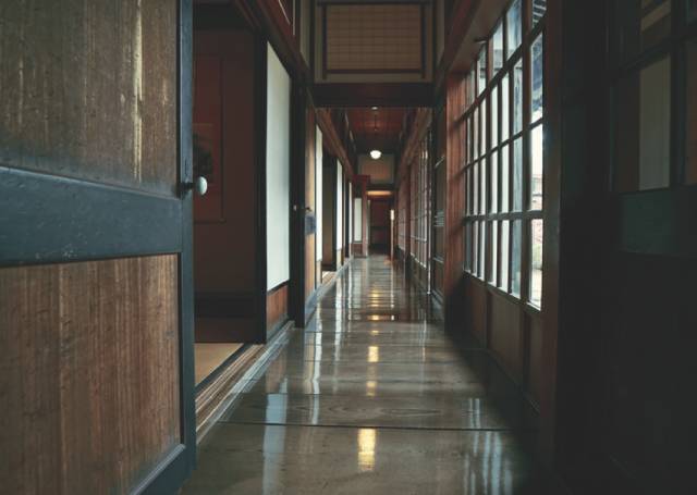 狭长的木走廊。为了防止贼人入侵,设计成走上去会发出声响的构造。