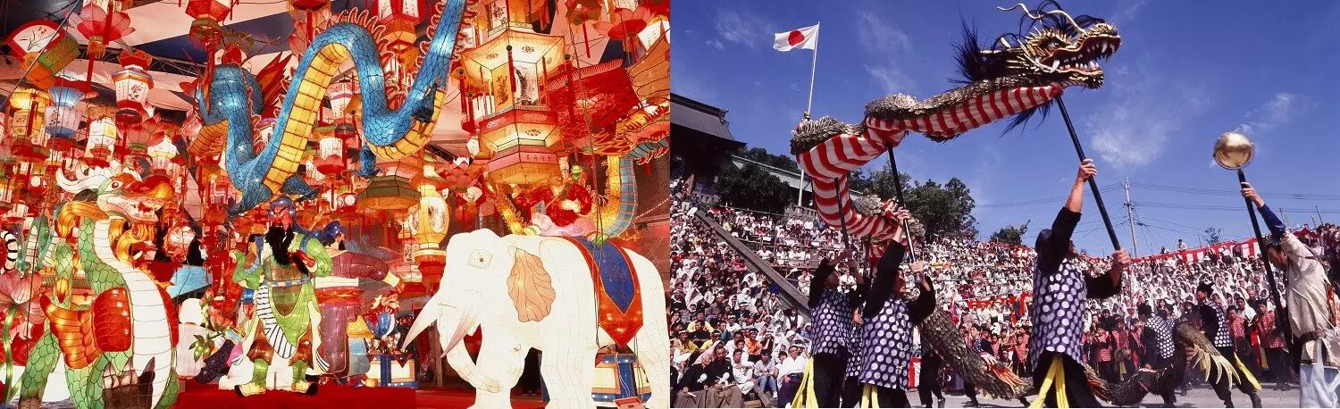 2016年2月8日-2月22日,长崎灯会,原本是当地华侨为了庆祝中国传统节日而举办,后来规模扩大,成为长崎冬天的一大风景诗。有中国花灯,妈祖巡游,皇帝仪仗队,舞龙,舞狮子等的传统节目。